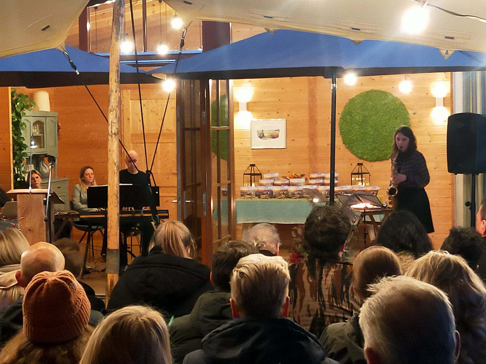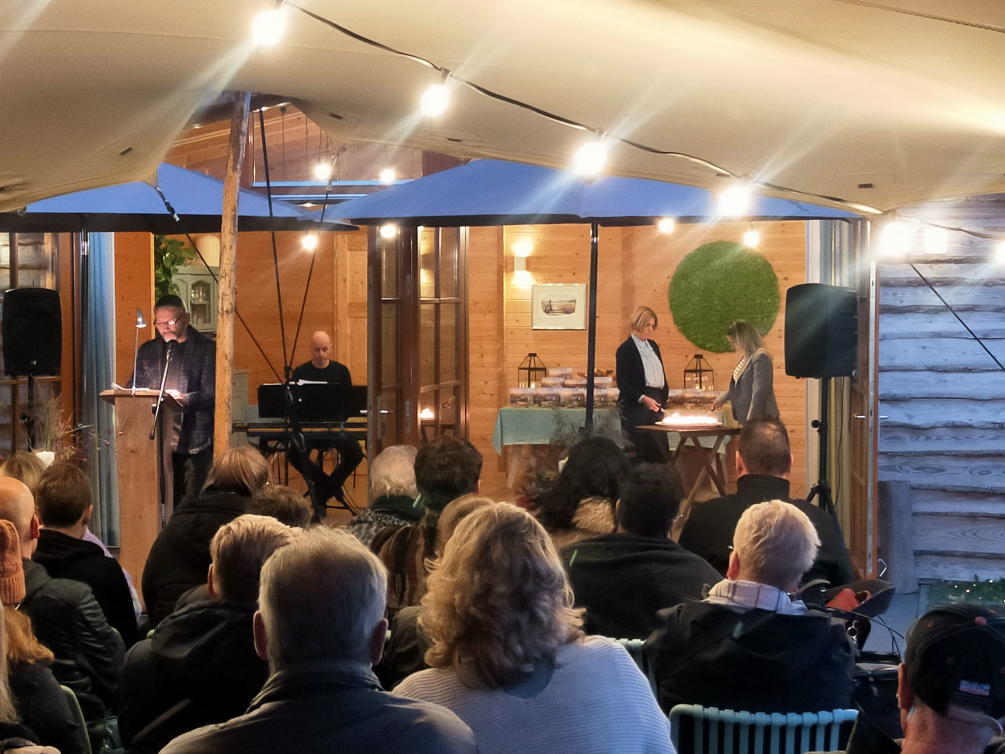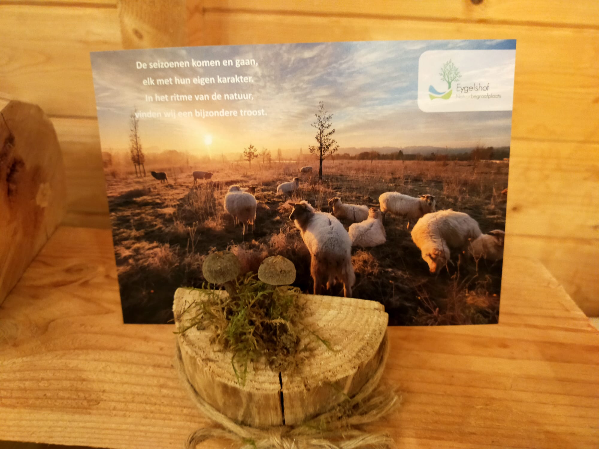 Na afloop van dit lichtjesritueel ontvingen we de nabestaanden in ons ontvangstgebouw. Onze vrijwilligers stonden voor iedereen klaar met een warme kop koffie, thee of chocolademelk en een lekkere wafel. Het was een sfeervol samenzijn in ons knusse ontvangstgebouw waar ruimte was om onderlinge contacten te leggen. Na afloop ging iedereen naar huis met een klein geschenk: een foto van de schapen in ons gebied op een door de natuurbeheerder gedecoreerde houtschijf uit ons natuurgebied. Wederom stonden de vrijwilligers paraat om de bezoekers met de E-car langs de verlichte paadjes naar hun auto terug te brengen.