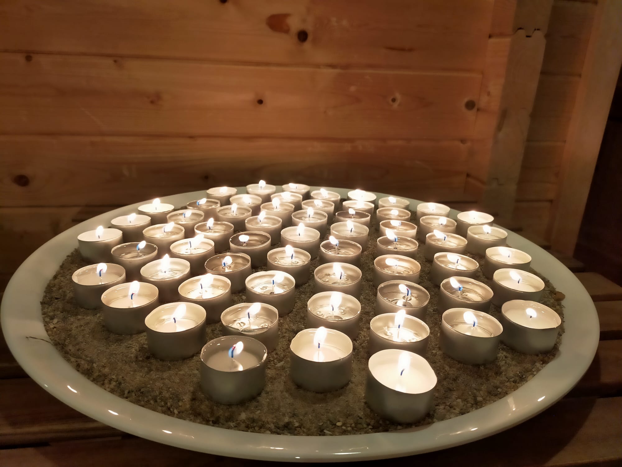 Tijdens de dienst steken we voor iedere overledene een kaarsje aan en noemen we zijn of haar naam. Het is een bijzonder ritueel dat ons verbindt met elkaar, de plek in de natuur waar we samenzijn en de dierbaren die van ons zijn heen gegaan. We nodigen de nabestaanden uit een theelichtje bij ons op te halen en deze in een glazen potje naar het graf van hun dierbare te brengen. In het donkerte gaan de nabestaanden op weg naar hun plekje in de natuur. Het is een emotioneel ritueel, elke stap van de wandeling richting het graf brengt de nabestaanden dieper bij hun herinneringen. Herinneringen die ze stil laten staan bij alle mooie en moeilijke momenten die ze samen met hun dierbare hebben beleefd.