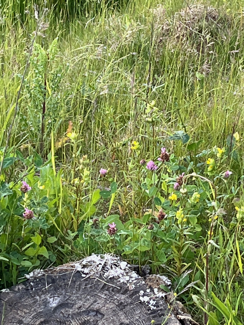 Zo stonden er veel verschillende vlinderbloemigen zoals Rode klaver, Witte klaver en hun kruising Bastaardklaver. Ook stonden er wikkes als Vierzadige wikke met vier zaden per peul en de Bonte wikke. Deze soorten groeien hier dankzij de stikstof die ze aan hun wortels binden. Er groeide ook Kleine ratelaar die parasiteert op grassen.